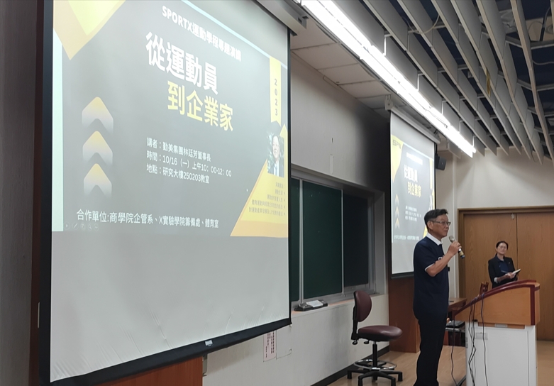 政大籌備多時的「運動產業與文化學士學位學程(SportX運動學程)」,10月16日與X實驗學院籌備處、體育室及商學院企管系舉辦第二場專題演講,邀請由政大企家班畢業的勤美集團董事長林廷芳擔任講者,以從運動員到企業家為題,分享林廷芳自身的「運動經營學」,了解運動不只是談論運動專業,背後也涵蓋文化素養、團隊意識及國際視野多個面向,運動家精神更是各產業跨界合作不可或缺的元素。